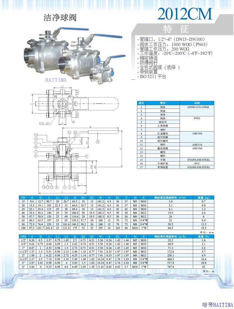 洁净球阀2012CD