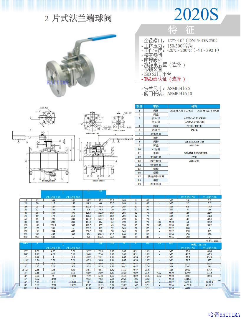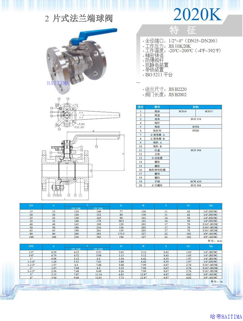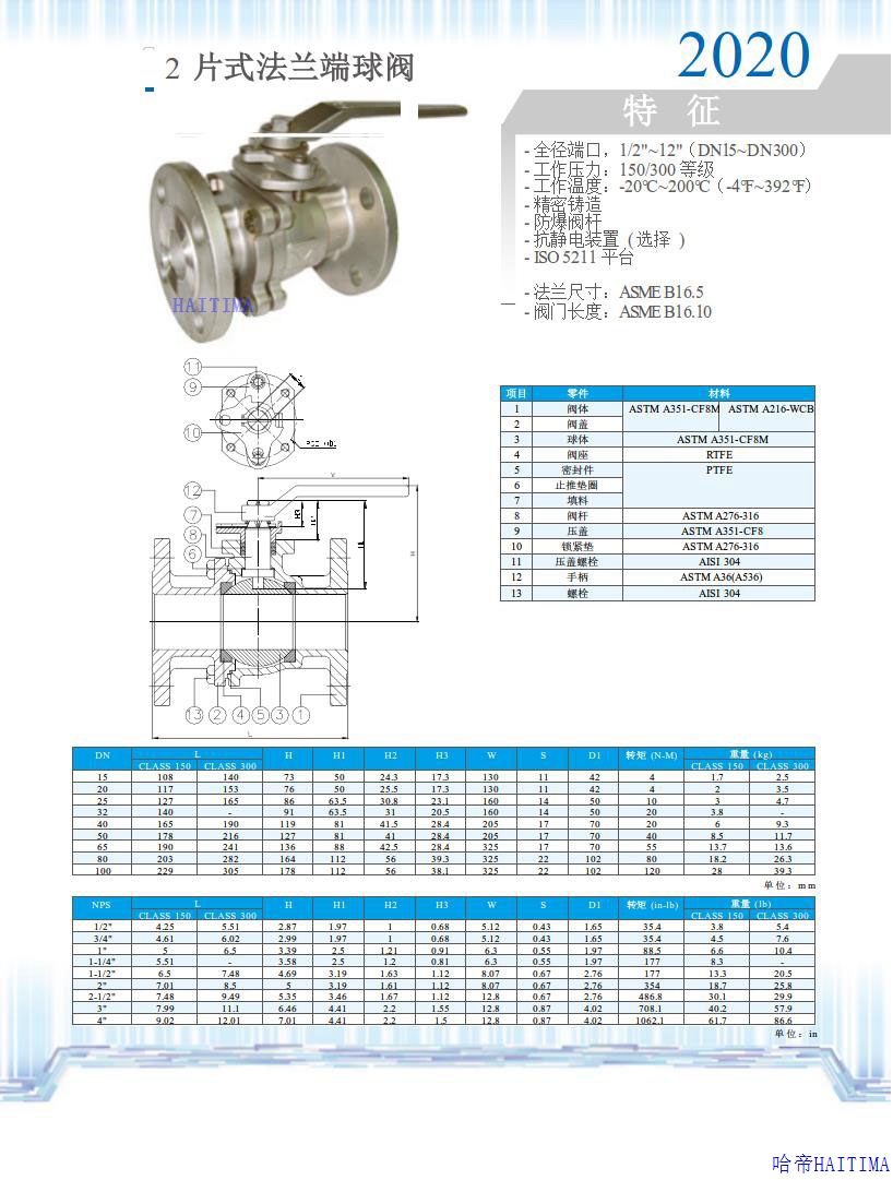 2片式法兰端球阀2020S