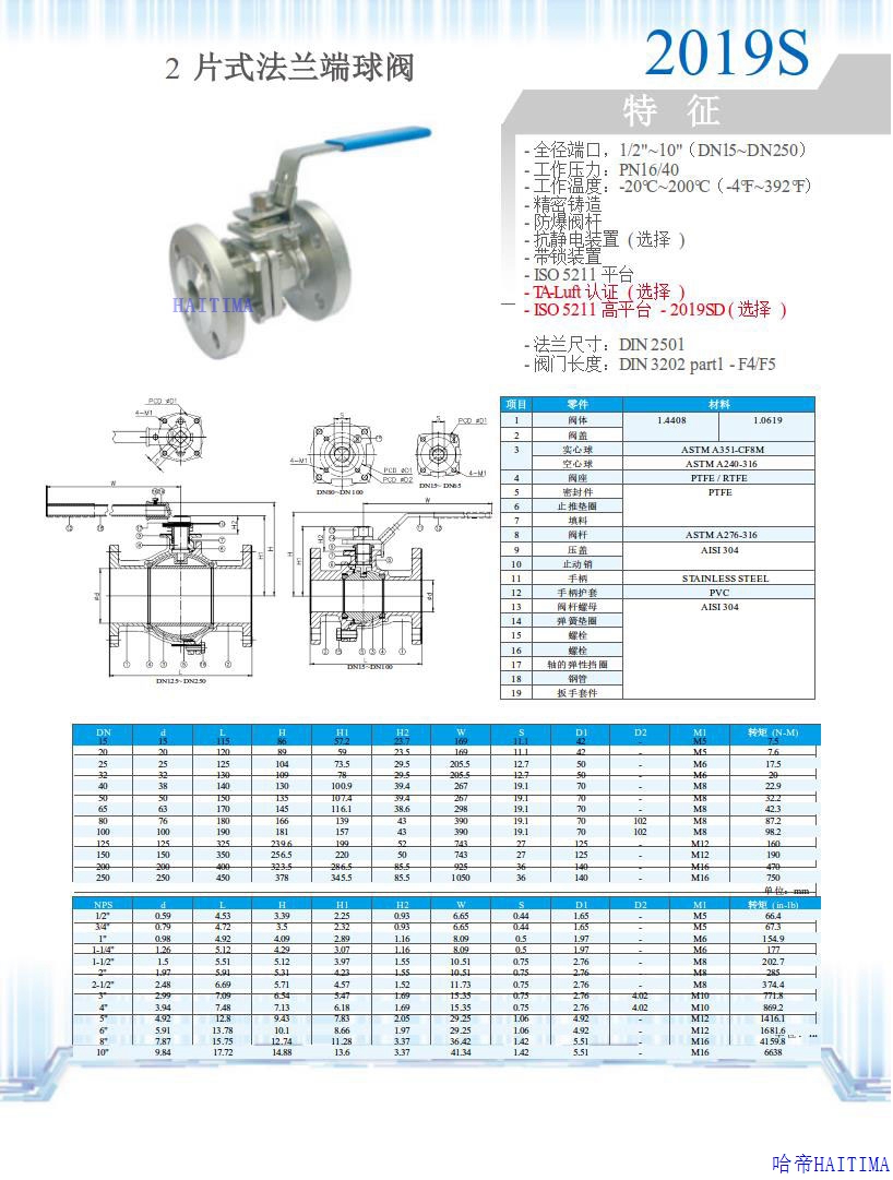 2片式法兰端球阀2019S